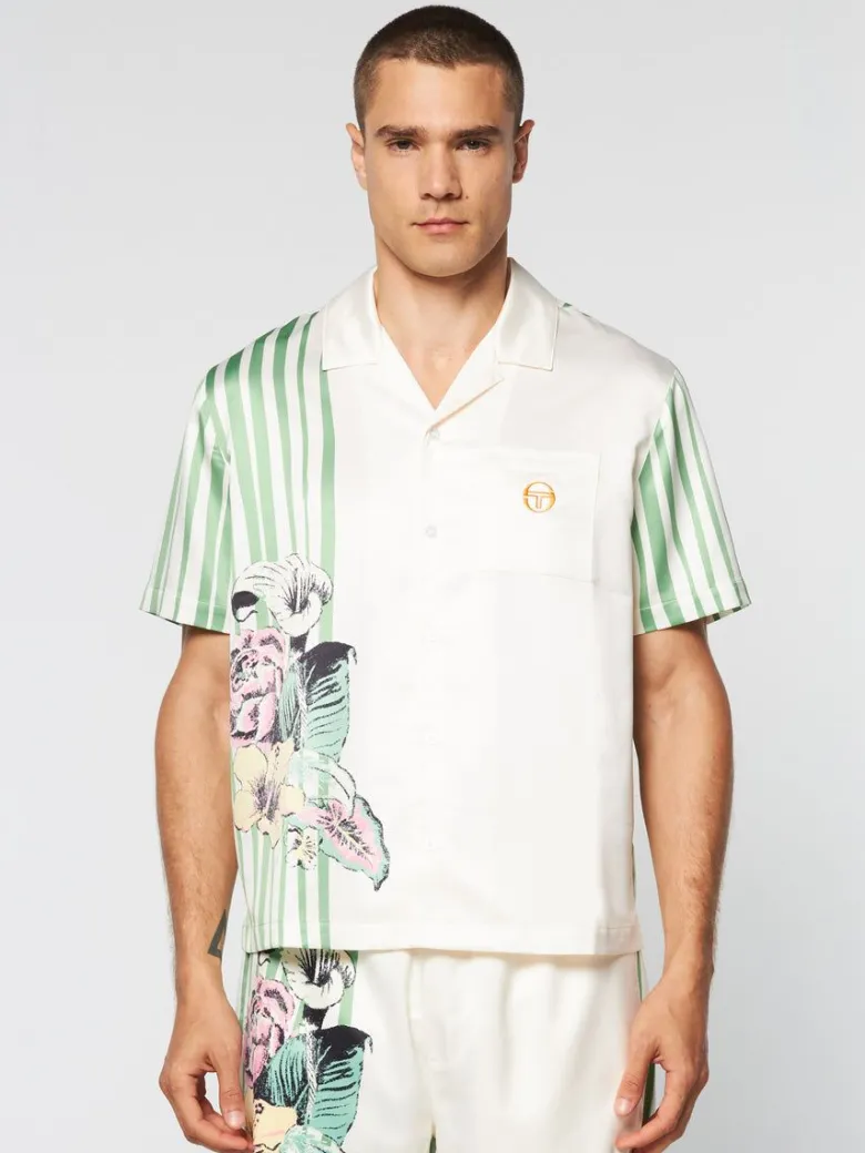 A Nod To Retro Luxury Resort Wear, The Ella Printed Shirt Is Crafted From Premium Crepe De Chine Satin And Features A Custom Tropical Print With Vertical Striping. Topped With A Casual Camp Collar, This Elevated Cabana Button-Up Is Complete With Our Iconic ‘St’ Monogram Embroidered At The Chest Pocket.