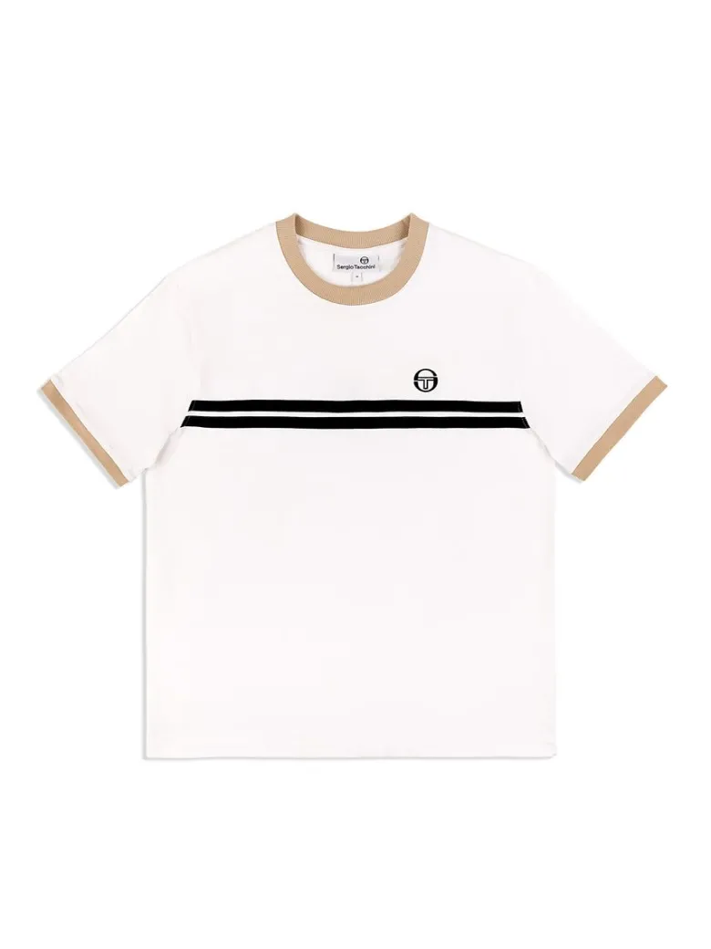 The Supermac T-Shirt Archivio Is Inspired By Our Classic Supermac Polo, Worn Throughout The ’80S By Tennis Champ John Mcenroe And A Staple Among British ‘Casuals.’ Featuring Contrast Double Stripe Taping Across The Chest And Our Iconic ‘St’ Monogram Logo Embroidered At Left Front, The Tee Is Part Of Our Archivio Collection—Celebrating Classic Designs From The Tacchini Archive.
