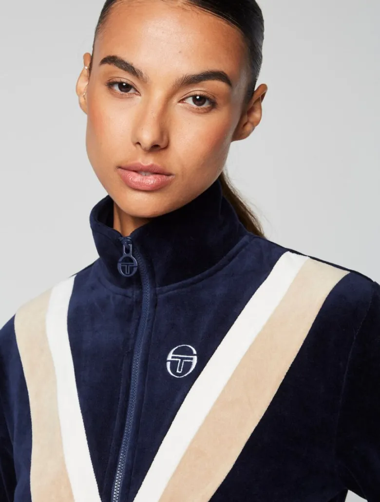 An Elevated Spin On Classic Sportswear, The Sara Velour Track Jacket Is Crafted From Plush Velour For A Soft And Luxurious Feel. Cut In A Cropped Silhouette For Easy Styling, This Premium Track Jacket Features Sporty Chevron Paneling At The Front, Spacious Pockets, And Our Iconic ‘St’ Monogram Logo Embroidered At The Left Chest.